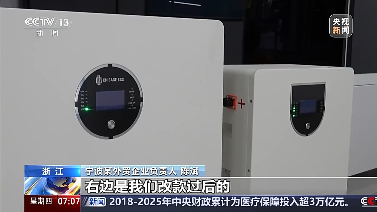 寧波某外貿企業(yè)負責人 陳斌:左邊的這個產品是我們原來的舊產品,右邊是我們改款過后的,相比原來的產品,新產品重量減少了15%左右,體積減小了25%左右,它的能量密度就更高了,在市場上就具有更好的競爭力。