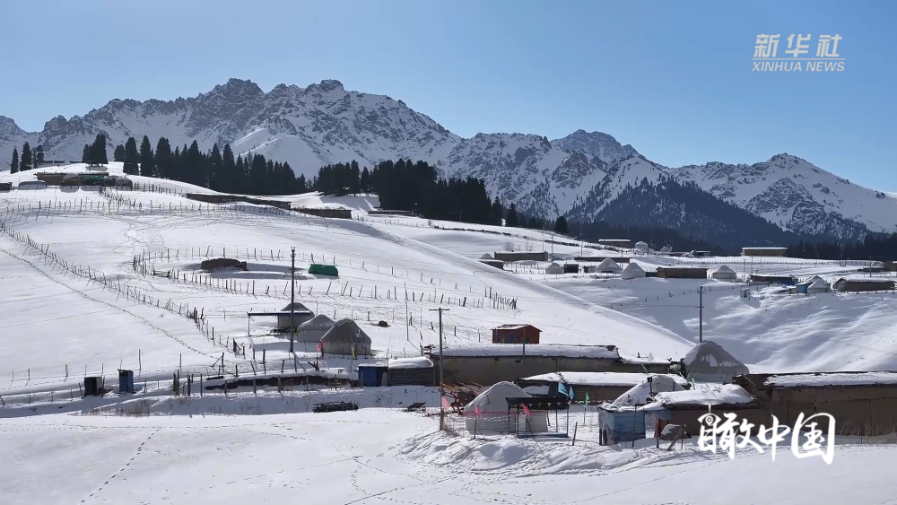 連綿的山巒披上了潔白的盛裝,峰巒疊嶂間,雪色如紗漫卷;層疊的田地靜臥于皚皚白雪之下,似千里素絹鋪展,盡顯大地的遼遠(yuǎn)與柔美。無垠雪野中,馬兒悠然覓食,與遠(yuǎn)處蒼勁的松林相映成趣。每一處風(fēng)景都藏著江布拉克獨(dú)有的浪漫,共同勾勒出一幅靈動而靜謐的冬日畫卷。
