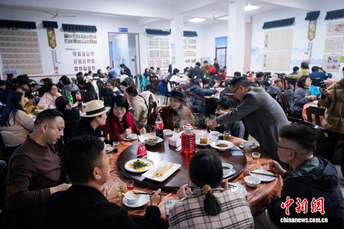 浙江湖州,村民、游客在茅塢村共享年豬飯。湖州市新聞傳媒中心供圖