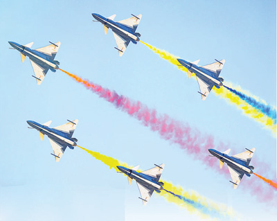 第十一屆空軍航空開(kāi)放活動(dòng)和長(zhǎng)春航空展上,空軍八一飛行表演隊(duì)進(jìn)行飛行表演。鄒新江攝