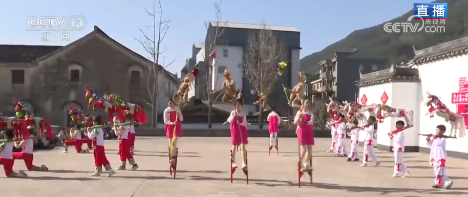 旁邊進(jìn)行的是踩高蹺表演,和北方高蹺相比,河上鎮(zhèn)高蹺的高度并不算高,但卻格外講究“鮮”跟“活”。小朋友們踩著高蹺,時而轉(zhuǎn)身,時而跳躍,動作靈動又驚險,這正是傳統(tǒng)文化傳承中最動人的模樣。