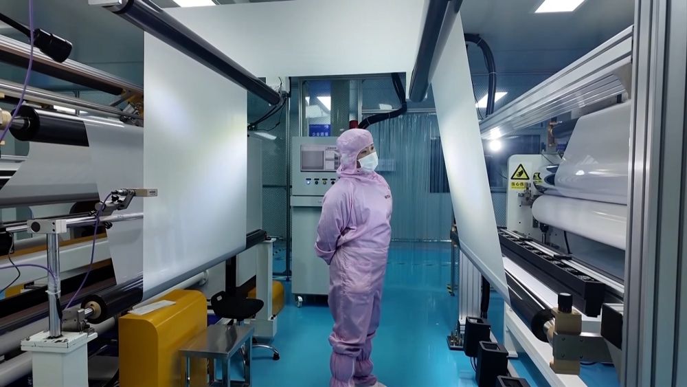 在園區(qū)內(nèi)的湖南壹鑫科技有限公司無(wú)塵生產(chǎn)車間,光學(xué)薄膜自動(dòng)化生產(chǎn)線正滿負(fù)荷運(yùn)轉(zhuǎn)。