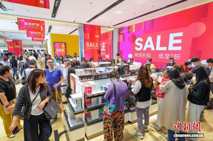 圖為元旦假期,cdf??趪H免稅城迎來購物熱潮,眾多游客前來選購心儀商品。 中新網(wǎng)記者 駱云飛 攝