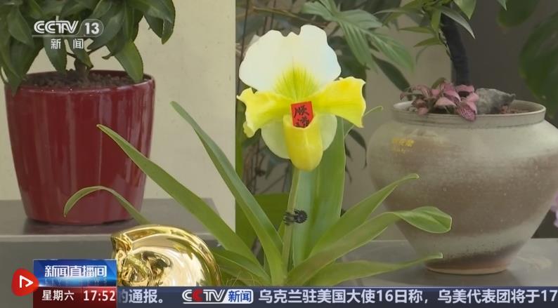 在北京花卉交易中心,各色年宵花爭(zhēng)奇斗艷。其中新品蘭花“兜蘭”十分惹眼,獨(dú)特的兜形花瓣里,被放入“順?biāo)臁薄敖】怠钡淖8?ㄆ⒁狻岸底№標(biāo)臁薄岸底〗】怠?,祝福滿滿,年味十足。野生兜蘭原本是珍稀植物,經(jīng)過(guò)多年人工馴化,品種產(chǎn)量快速增長(zhǎng),價(jià)格也從最初的近千元降至如今百元左右。