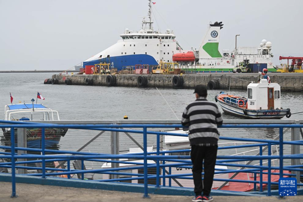 這是1月19日拍攝的停靠于智利中部瓦爾帕萊索港的中國(guó)“探索一號(hào)”科考船。新華社發(fā)(豪爾赫·比列加斯攝)