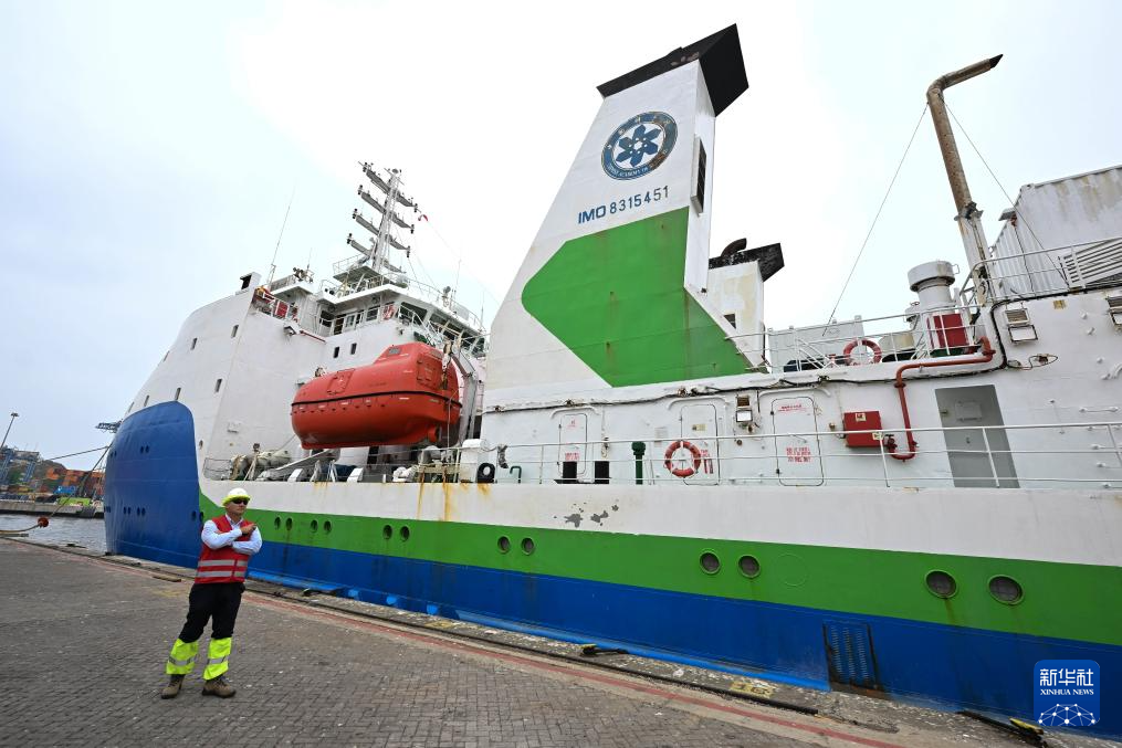 這是1月19日拍攝的??坑谥抢胁客郀柵寥R索港的中國(guó)“探索一號(hào)”科考船。新華社發(fā)(豪爾赫·比列加斯攝)