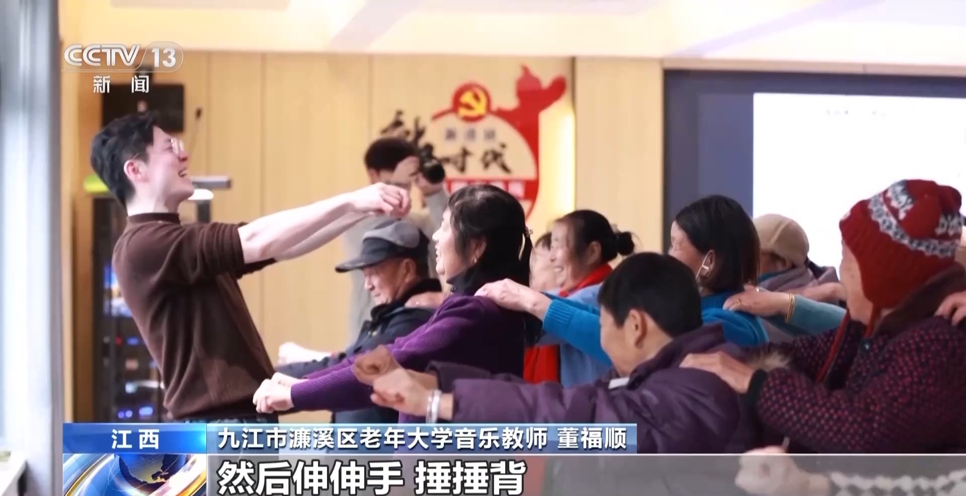 九江市濂溪區(qū)老年大學(xué)音樂教師 董福順:我覺得音樂它是有律動的,結(jié)合那個律動再加這些動作,然后伸伸手、捶捶背,我覺得這不就是生活中的動作,你把它再帶到課堂里邊兒,帶到音樂里邊兒,課堂就不一樣。