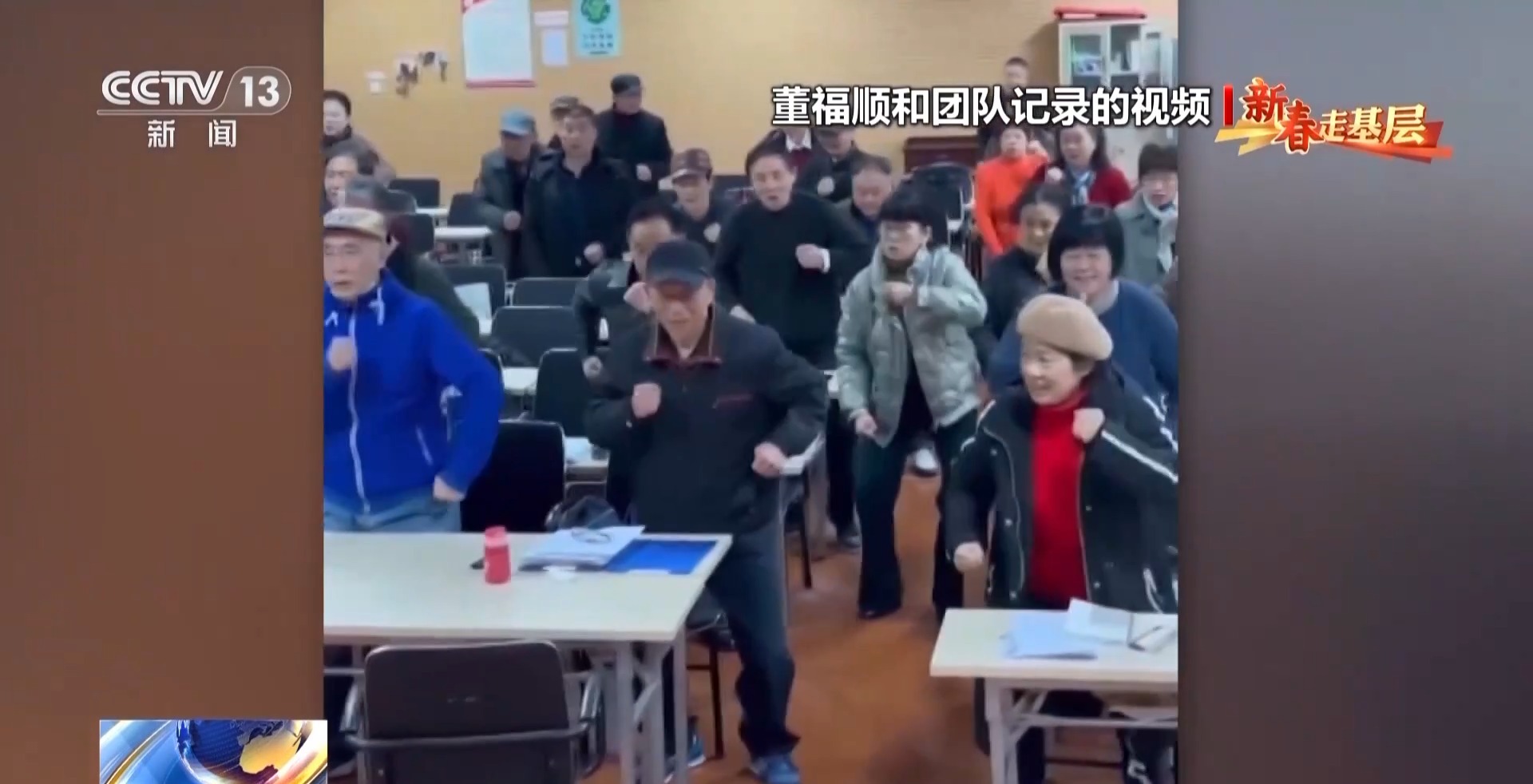 給老人們上課,小董全情投入,即使是冬天,一節(jié)課下來,衣服也已經(jīng)濕透。