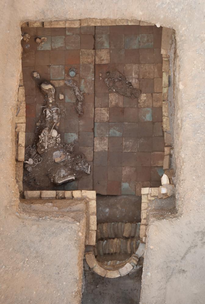 這是庫車市友誼路墓群發(fā)掘出土的唐代斜坡墓道磚室墓。(新疆文物考古研究所供圖)
