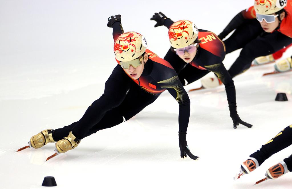 1月29日,中國(guó)短道速滑隊(duì)選手在訓(xùn)練中。新華社記者 張晨 攝