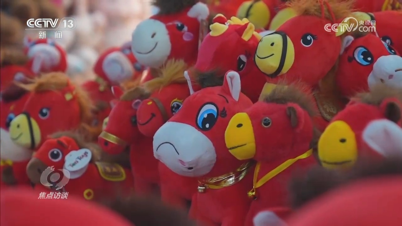 近年來,生肖文化、非遺主題的文創(chuàng)成為了新的過年硬通貨,給孩子帶上兩個(gè)馬年玩偶也是今年的潮流。在浙江義烏,今年春節(jié)年貨市場(chǎng)里,生肖經(jīng)濟(jì)日益火熱使得一款“哭哭馬”玩偶意外走紅??p反嘴的“錯(cuò)版小馬”委屈的表情不但沒有被消費(fèi)者嫌棄,反而因?yàn)樘峁┝霜?dú)特的情緒價(jià)值,很快就成了爆款。