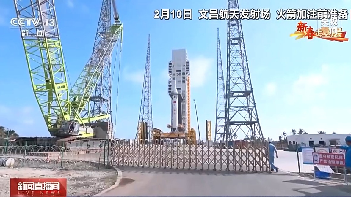 總臺央視記者 王曉丹:由于長征十號的測發(fā)指控大樓還在建設(shè)當(dāng)中,為了確保各項試驗任務(wù)如期推進(jìn),科研人員暫時把火箭后端測發(fā)系統(tǒng)臨時搭建在集裝箱方艙內(nèi),在這里對火箭進(jìn)行發(fā)射前的各項遠(yuǎn)程控制、測試和檢查等工作。