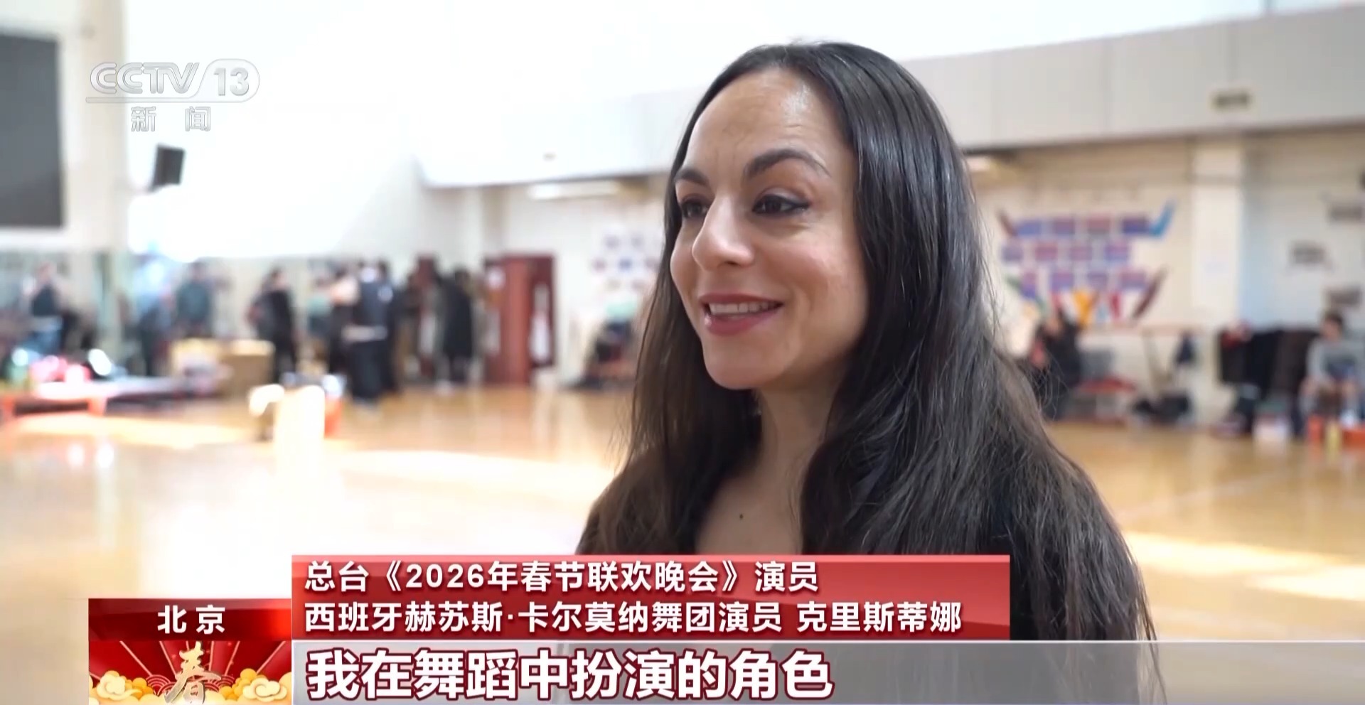 總臺《2026年春節(jié)聯(lián)歡晚會》演員 西班牙赫蘇斯·卡爾莫納舞團演員 克里斯蒂娜:我在舞蹈中扮演的角色展現(xiàn)了西班牙如火般的熱情,這段舞蹈想要傳遞的是世界上的各個民族是可以融合在一起的。每個國家、每種文化都可以在團結中找到共鳴。這樣的畫面很美,也希望觀眾能享受這種獨特的融合之美。