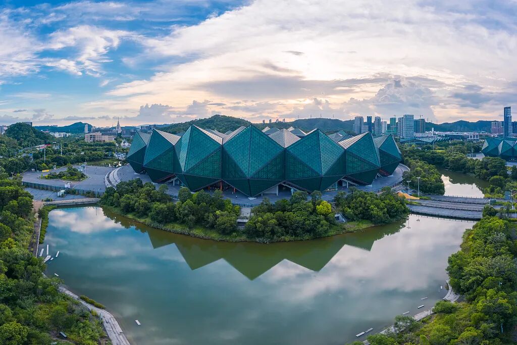 作為深圳文體地標——深圳大運中心體育館極具現(xiàn)代建筑美學,成為電影“城市森林”畫面的重要底色。這座以“水晶石”為造型的建筑,線條流暢、質(zhì)感硬核。