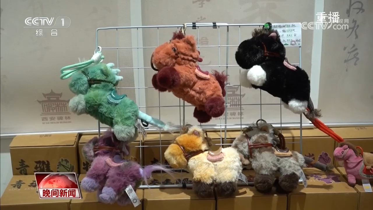 在西安碑林博物館,以唐代“昭陵六駿”石刻為原型的毛絨玩具集歷史文化和現(xiàn)代設計于一體,線下門店經(jīng)常賣斷貨。