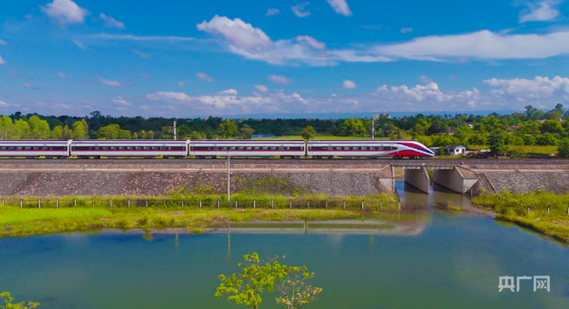 中老鐵路D87次國(guó)際旅客列車奔馳在老撾萬(wàn)象(央廣網(wǎng)發(fā) 楊永全 攝)