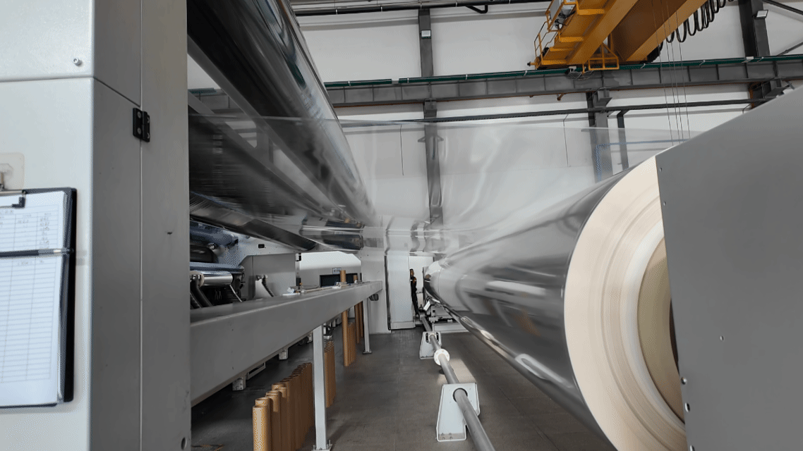 昆明安寧產(chǎn)業(yè)園內(nèi)的自動(dòng)化寬幅薄膜生產(chǎn)線(央廣網(wǎng)記者 趙貝貝 制)