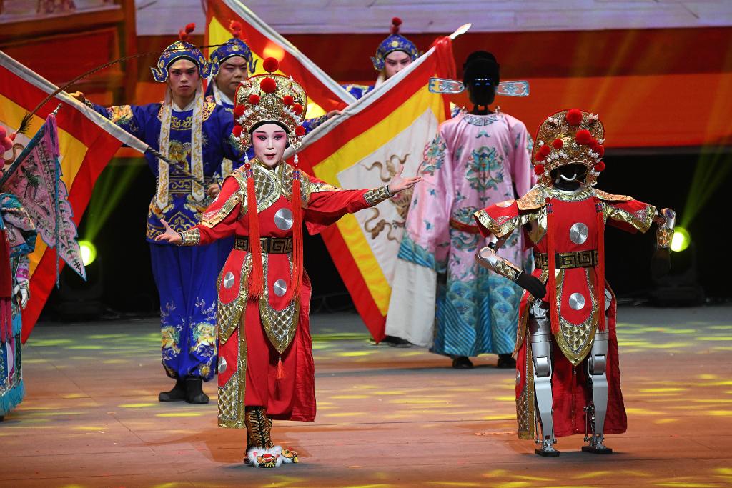 活動期間,一場“人機(jī)共舞”的演出線上直播觀看突破10萬人次。機(jī)器人“旺來”藝術(shù)團(tuán)融合廈金宋江陣、布袋木偶戲等非遺,與真人武者過招、變化陣型。