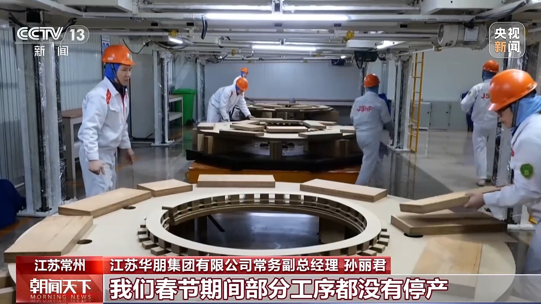 江蘇華朋集團(tuán)有限公司常務(wù)副總經(jīng)理 孫麗君:眼下,我們?cè)谑钟唵我殉^(guò)30億元,其中出口訂單超過(guò)20億元,現(xiàn)在訂單已經(jīng)排到年底。為了搶抓工期,確保訂單按時(shí)交付,我們春節(jié)期間部分工序都沒(méi)有停產(chǎn)。