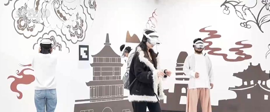春節(jié)期間,隨處可見的科技元素助力提升游客體驗。在西安長安十二時辰主題街區(qū),游客戴上XR設(shè)備即可沉浸式開啟長安地宮探秘之旅。
