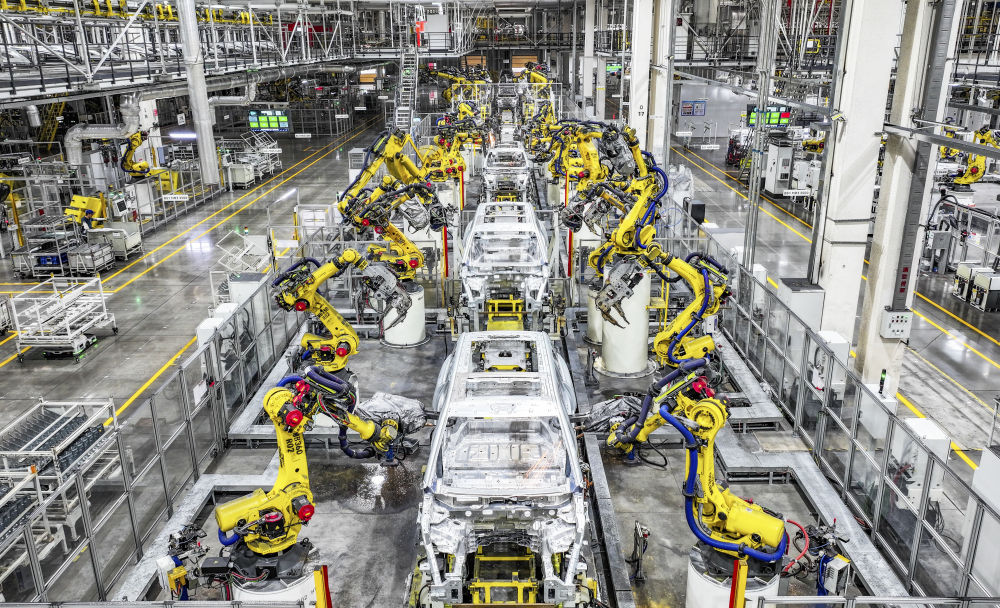 在位于重慶市兩江新區(qū)的賽力斯汽車(chē)超級(jí)工廠拍攝的自動(dòng)化生產(chǎn)作業(yè)現(xiàn)場(chǎng)(2025年9月19日攝)。
