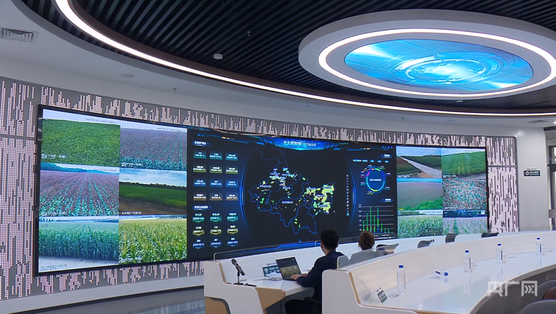 在北大荒信息公司的智慧農業(yè)大數(shù)據(jù)中心,數(shù)據(jù)庫集合了北大荒4800多萬畝耕地80年來的種植數(shù)據(jù),工作人員通過操作智慧大屏展示了黑土地智慧農業(yè)“未來”的模樣。