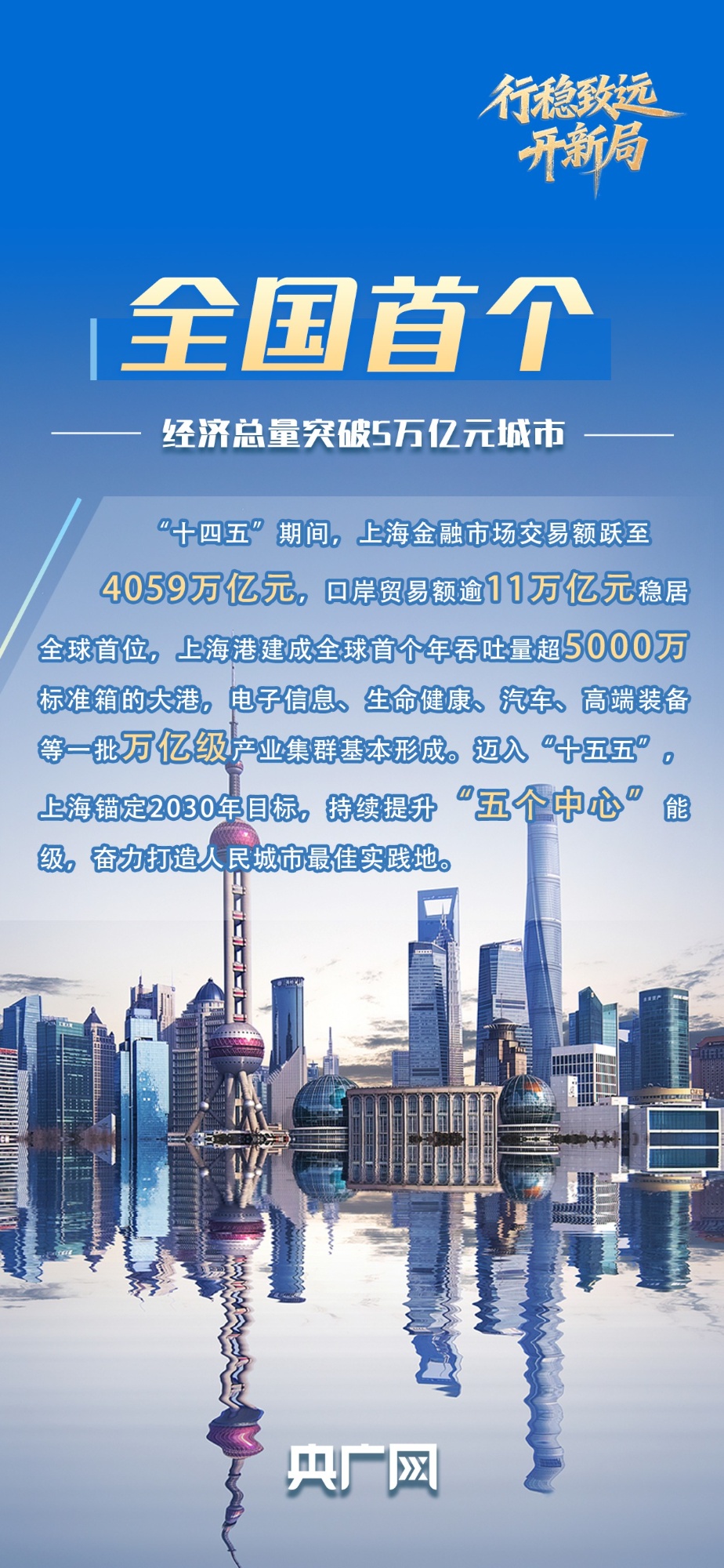 “十四五”期間,上海聚焦建設(shè)國際經(jīng)濟(jì)中心、金融中心、貿(mào)易中心、航運(yùn)中心、科技創(chuàng)新中心的重要使命,綜合實(shí)力實(shí)現(xiàn)新跨越。全市生產(chǎn)總值從4.16萬億元增加到5.67萬億元,成為全國首個經(jīng)濟(jì)總量突破5萬億元的城市,躋身全球城市前五位。成績單背后,既是上?!拔鍌€中心”建設(shè)的階段性成效,更是“十五五”期間邁向更高能級的底氣所在。