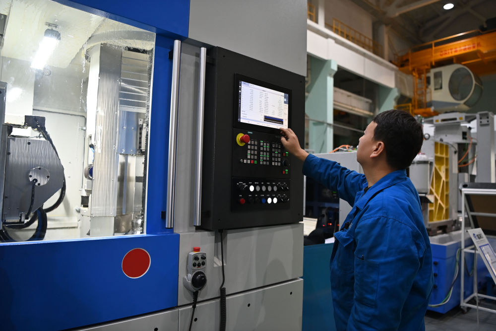 2025年10月28日,在秦川機床工具集團(tuán)股份公司總裝車間,工作人員在調(diào)試機床。新華社記者 肖瀟 攝