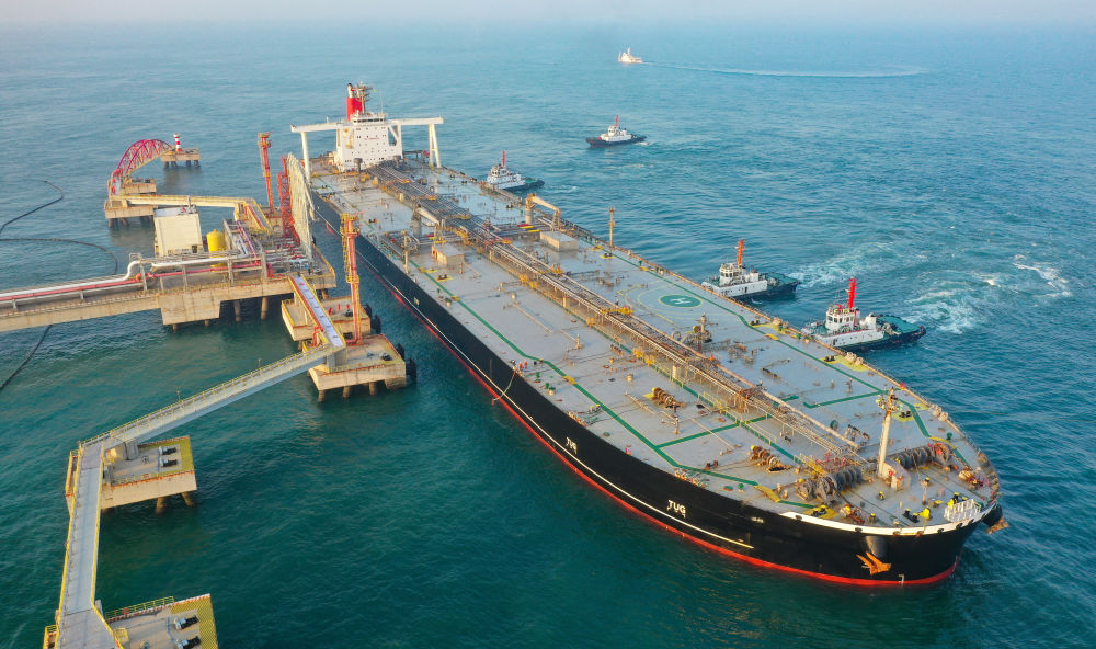 2025年12月18日,一艘裝載著石化原輔料的外籍船舶泊入位于海南省儋州市的國(guó)投洋浦油儲(chǔ)碼頭30萬噸級(jí)原油泊位(無人機(jī)照片)。當(dāng)日,海南自由貿(mào)易港正式啟動(dòng)全島封關(guān)。新華社記者 郭程 攝