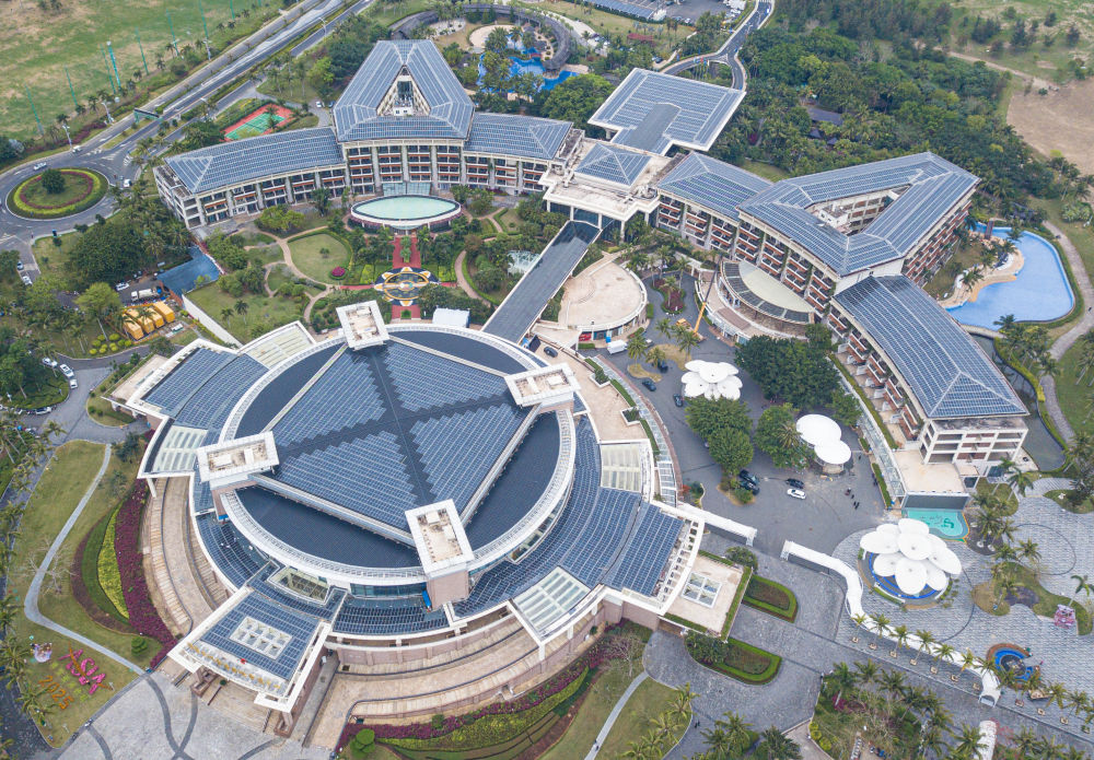 圖為博鰲亞洲論壇國(guó)際會(huì)議中心和博鰲亞洲論壇大酒店屋頂?shù)墓夥O(shè)備(2025年3月16日攝,無人機(jī)照片)。 新華社記者 蒲曉旭 攝