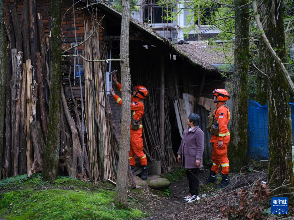 3月29日,消防救援人員在都江堰林區(qū)督導(dǎo)檢查林區(qū)周邊住戶用電用火安全。