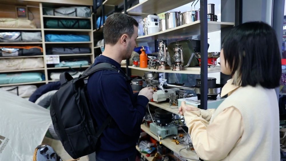 在義烏國際商貿(mào)城,帳篷、桌椅、睡袋等戶外用品琳瑯滿目,吸引眾多采購商前來選購,戶外用品市場迎來春日熱潮。