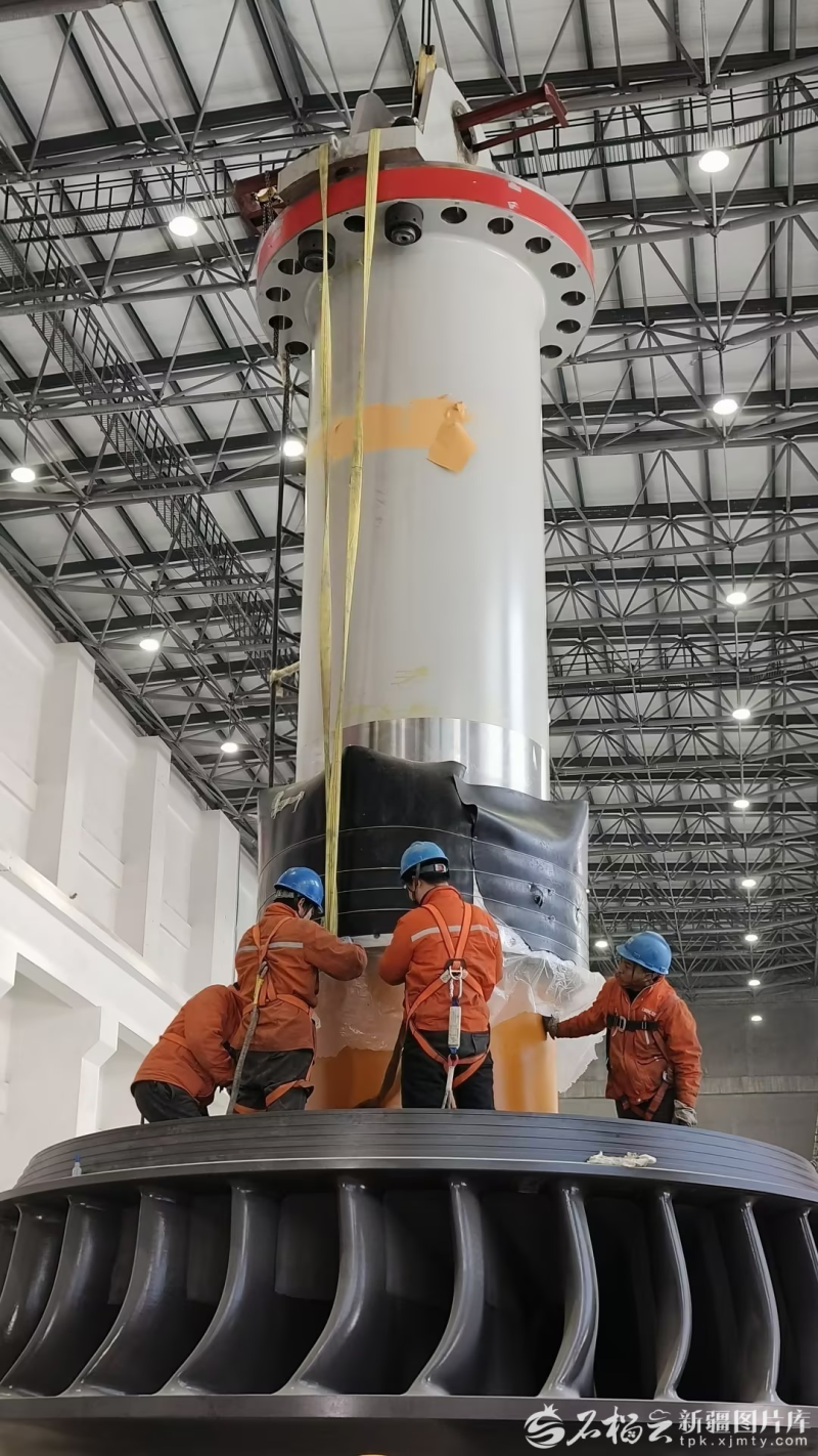 新疆大石峽水利樞紐工程發(fā)電廠房?jī)?nèi),工作人員正在進(jìn)行3號(hào)機(jī)轉(zhuǎn)輪浮動(dòng)環(huán)安裝。潘生明攝