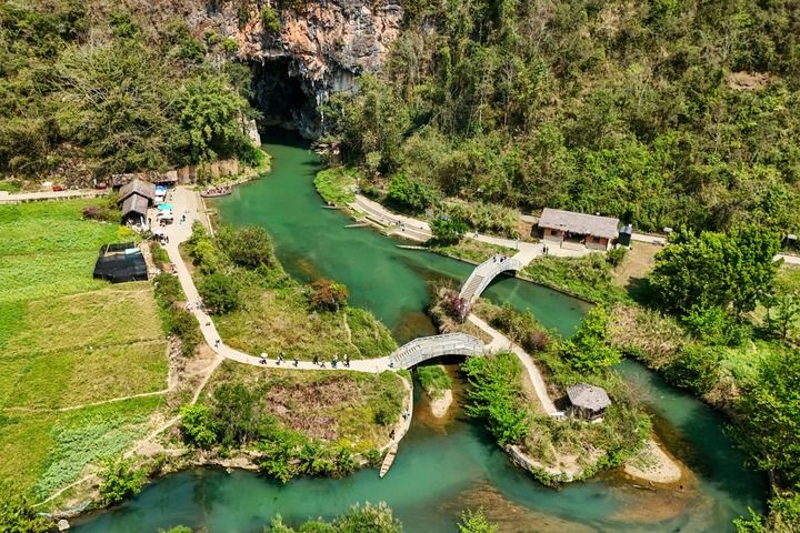 2026年3月17日,游客在云南省文山壯族苗族自治州廣南縣壩美景區(qū)游覽(無人機(jī)照片)。近年來,當(dāng)?shù)厣钊胪诰驂蚊来遛r(nóng)文旅融合發(fā)展?jié)摿?,一方面打造沉浸式旅游體驗(yàn)項(xiàng)目,讓游客在欣賞自然風(fēng)光的同時(shí),感受壯鄉(xiāng)傳統(tǒng)農(nóng)耕文化;另一方面景區(qū)積極吸納本地村民就業(yè),鼓勵(lì)其因地制宜創(chuàng)業(yè)增收,推動(dòng)農(nóng)業(yè)與旅游業(yè)互促共進(jìn)。新華社記者 彭奕凱 攝