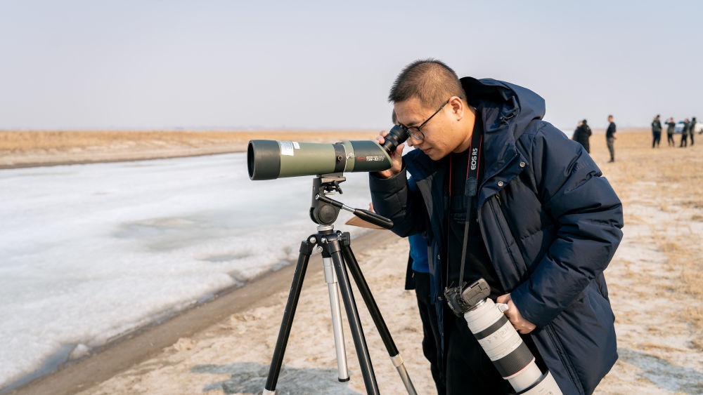 鳥類科研工作者在吉林省白城市鎮(zhèn)賚縣觀察候鳥。新華社記者 唐成卓 攝