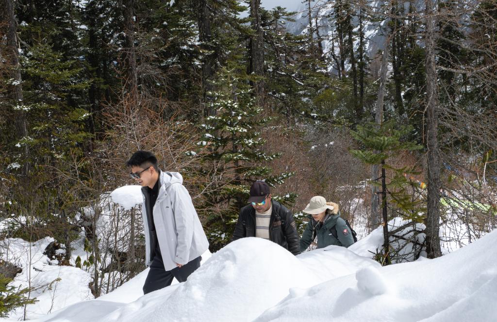波密白普隆溝,春雪覆蓋了通往牧場的小徑。步行入山,是與山野對話的唯一途徑。正是這份原始與野性,構(gòu)成了新興戶外旅游最大的吸引力。村民們發(fā)現(xiàn),守住這片山野,時間自會予它價值——白普隆溝新興的徒步服務(wù),過去近一年間為村莊帶來了近兩百萬元的收益。