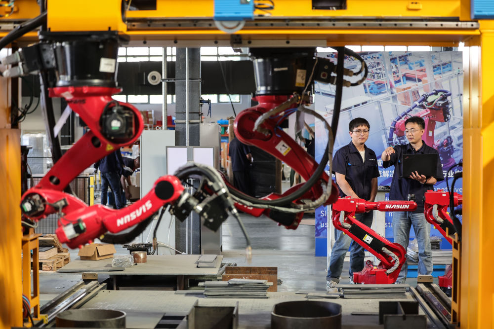 2024年6月3日,沈陽(yáng)新松機(jī)器人自動(dòng)化股份有限公司的機(jī)器人研發(fā)工程師討論智能焊接機(jī)器人平臺(tái)焊接方案。機(jī)器人工程技術(shù)人員作為人力資源和社會(huì)保障部2022年6月公布的18個(gè)新職業(yè)之一,在研發(fā)設(shè)計(jì)機(jī)器人工作中扮演著重要角色。讓“鐵疙瘩”聽懂話、干對(duì)活,是他們的重要工作內(nèi)容。