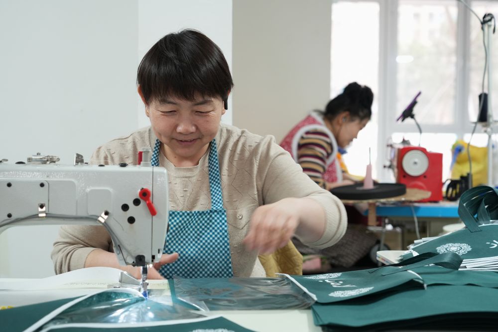 2025年3月27日,回遷居民在雄安新區(qū)“雄業(yè)創(chuàng)工坊”包裝工坊加工無(wú)紡布。工坊引入有持續(xù)發(fā)展?jié)摿?、?duì)社區(qū)環(huán)境影響較小的產(chǎn)業(yè),為回遷群眾提供靈活多樣的就業(yè)崗位,讓回遷居民實(shí)現(xiàn)“上樓安家,下樓就業(yè)”。
