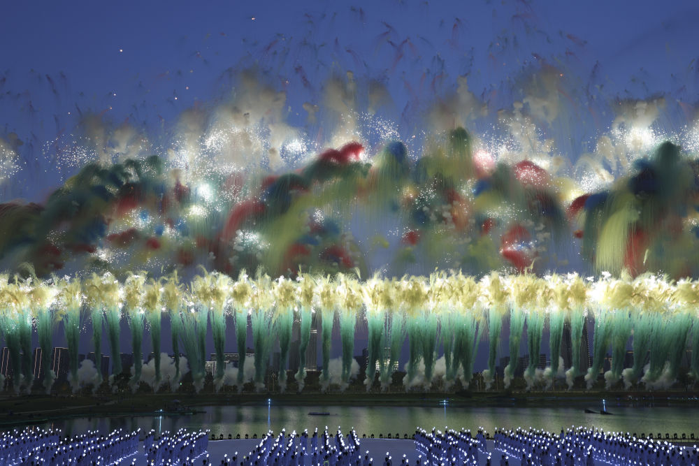 2025年8月7日在第12屆世界運(yùn)動(dòng)會(huì)開(kāi)幕式上拍攝的焰火表演。
