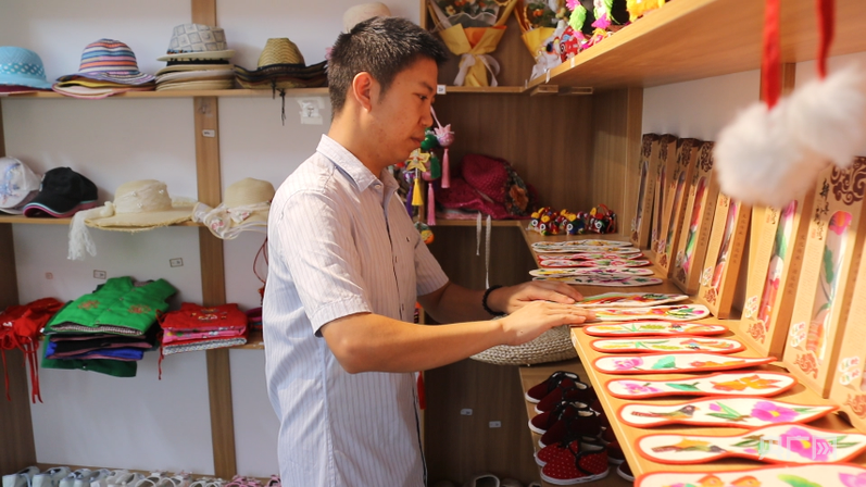從外地返鄉(xiāng)的“90后”扶銀廷和妻子,在田鋪大塆創(chuàng)辦了一家“文創(chuàng)工坊”?!跋裥瑝|、虎頭枕、虎頭帽這些手工制品,都是我們當?shù)匾恍├先?、大姐手工做的。這些特色的文創(chuàng)產(chǎn)品既能讓游客了解當?shù)乇就廖幕衷黾恿舜迕袷杖??!狈鲢y廷說。