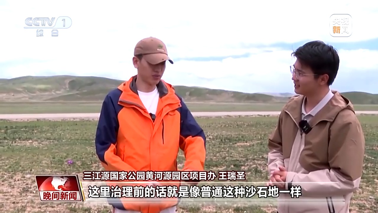 三江源國家公園黃河源園區(qū)項(xiàng)目干事 王瑞圣:這里治理前就像普通沙石地一樣,治理完的成效就是這樣子的,我們的草籽就在當(dāng)時(shí)切割的凹槽里面生長,這些草籽好多根部已經(jīng)進(jìn)行分裂了,所以會顯得非常茂密。