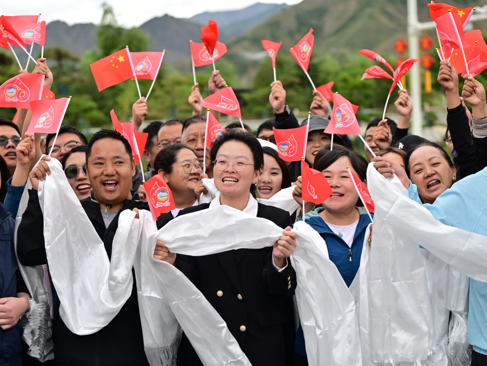 中共中央總書記、國(guó)家主席、中央軍委主席習(xí)近平率中央代表團(tuán)20日中午乘專機(jī)抵達(dá)拉薩,出席西藏自治區(qū)成立60周年慶?;顒?dòng)。習(xí)近平等在機(jī)場(chǎng)和拉薩市區(qū)受到西藏各族群眾的熱烈歡迎。
