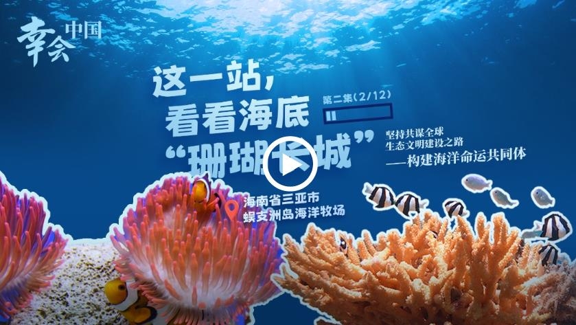 這一站,我們來到了海南三亞,一同潛入這片生命蓬勃的藍色世界。在蜈支洲島,中國首個熱帶海洋牧場,海洋守護者們花了數(shù)十年時間培育了30萬株珊瑚,構筑起了一座真正的海底“長城”。海底的珊瑚如森林般繁茂,消失的魚群也因此重回海底家園,海洋生態(tài)仿佛重獲新生。在習近平生態(tài)文明思想的指引下,這里的生態(tài)修復不僅彰顯了保護的重要性,更是共謀全球生態(tài)文明之路的生動實踐。中國堅持守護海洋生態(tài),用行動書寫“海洋命運共同體”的信念。