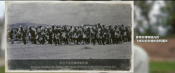 1942年日軍截?cái)嗟峋捁泛?,美?guó)空軍開辟“駝峰航線”,為中國(guó)提供軍用民用物資,為此迫切需要在短時(shí)間內(nèi)修建大量的機(jī)場(chǎng)。為了配合飛虎隊(duì)作戰(zhàn),中國(guó)人民在沒有重型機(jī)械設(shè)備的情況下,用汗水和鮮血筑成了一條條跑道。