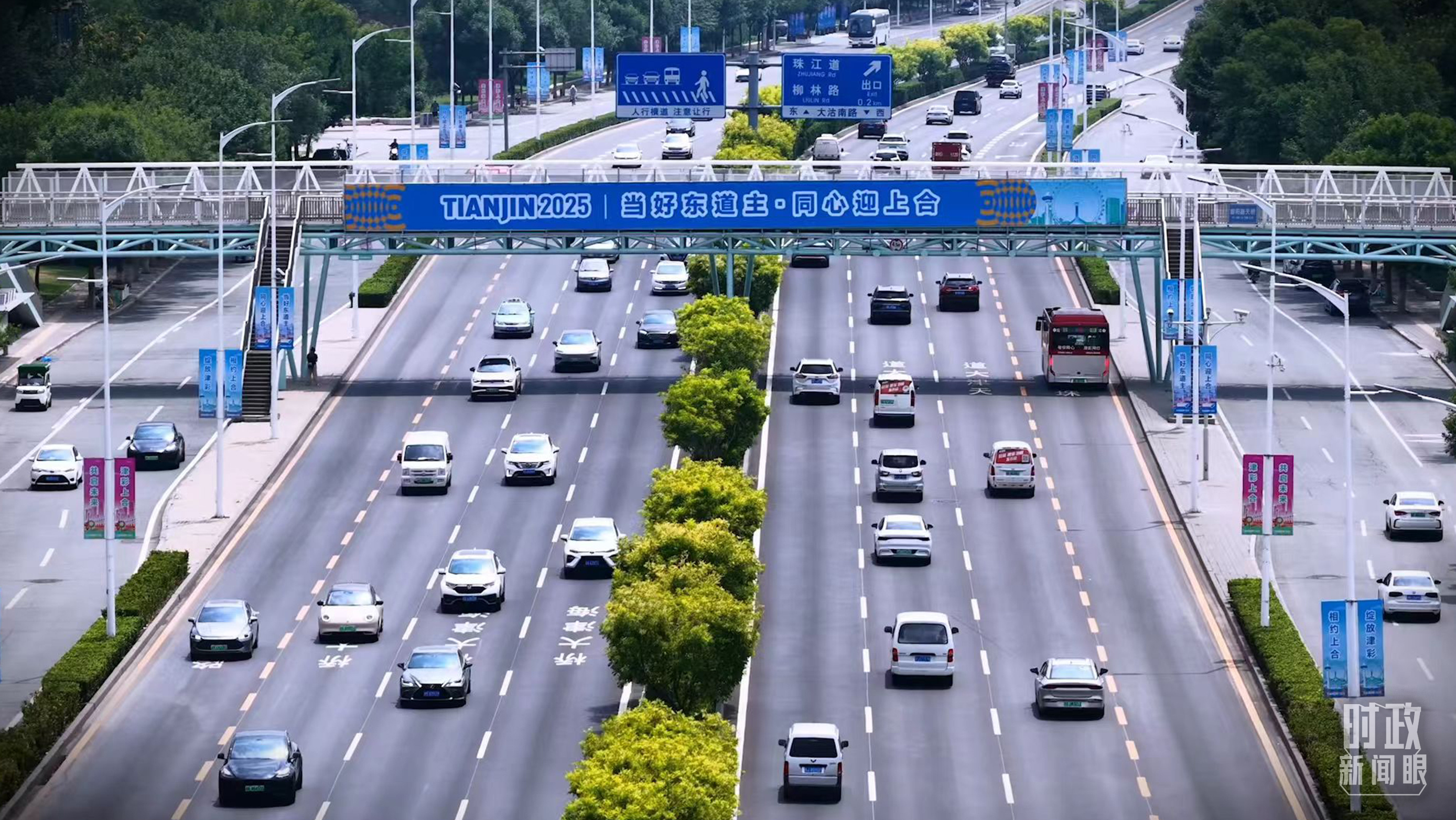 天津街頭的“上海精神”標(biāo)語。(總臺記者孫強拍攝)