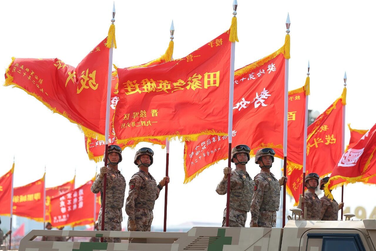 80面抗戰(zhàn)英模部隊榮譽(yù)旗幟組成戰(zhàn)旗方隊