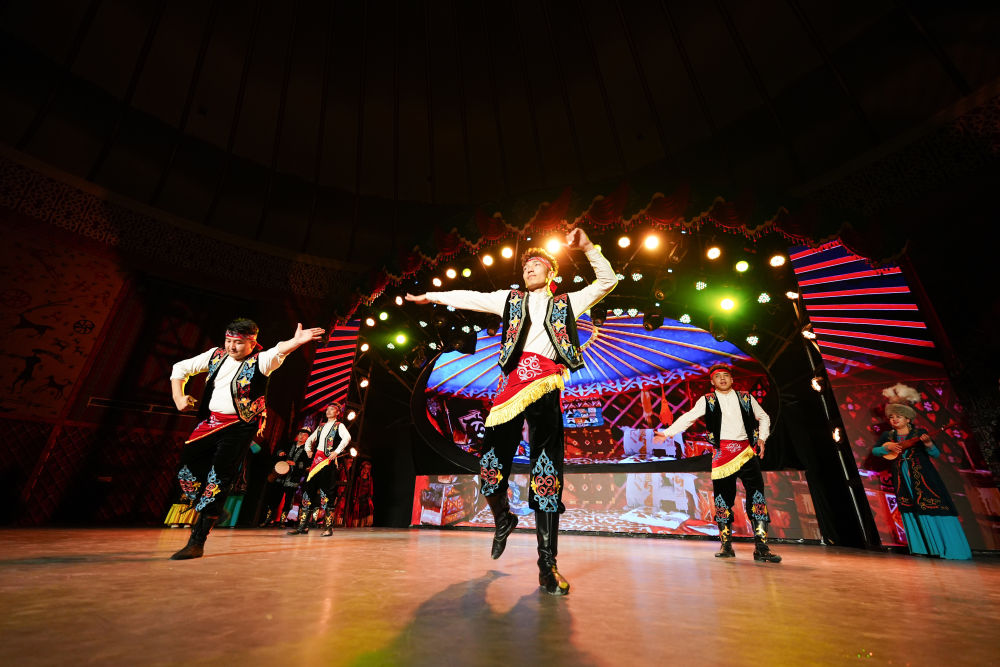 2025年5月1日,《新疆維吾爾自治區(qū)瑪納斯非物質(zhì)文化遺產(chǎn)保護(hù)條例》正式實(shí)施,為保護(hù)這部列入聯(lián)合國(guó)教科文組織非遺名錄的柯爾克孜族英雄史詩(shī)提供了法規(guī)遵循。這是2025年4月22日,演員在位于新疆阿圖什市的瑪納斯史詩(shī)大劇院為游客表演。