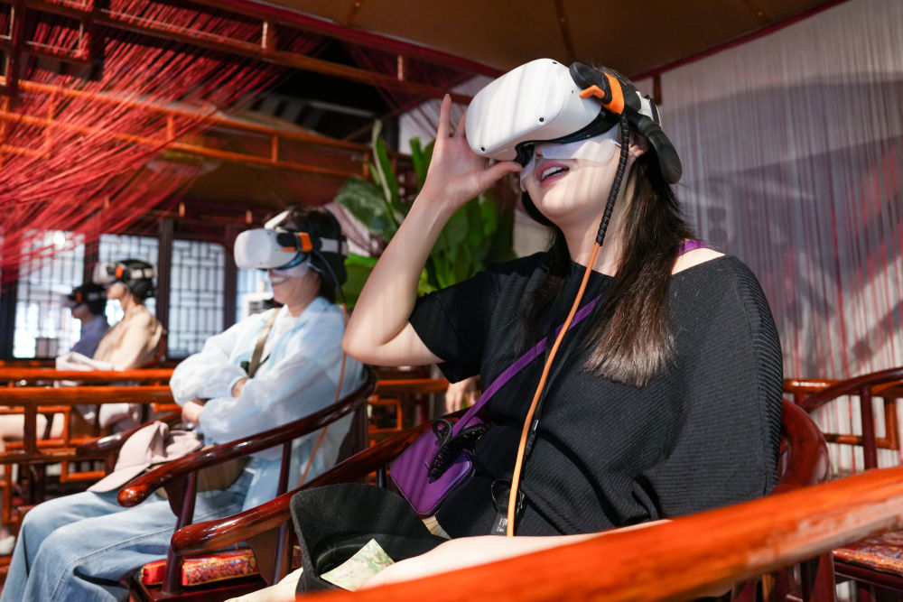 2025年5月18日,游客在江蘇蘇州拙政園體驗(yàn)VR漫游。近年來(lái),蘇州不斷推進(jìn)“數(shù)字園林”建設(shè),在園林整體數(shù)字建模、園林要素?cái)?shù)據(jù)庫(kù)建設(shè)等方面開展探索,利用數(shù)字技術(shù)創(chuàng)造“數(shù)字云游”VR場(chǎng)景,打造“云游拙政園”“獅林園宇宙”“留園虛擬元宇宙”等項(xiàng)目,營(yíng)造真實(shí)可感的虛擬空間,讓觀眾沉浸式感受蘇州園林的獨(dú)特魅力。