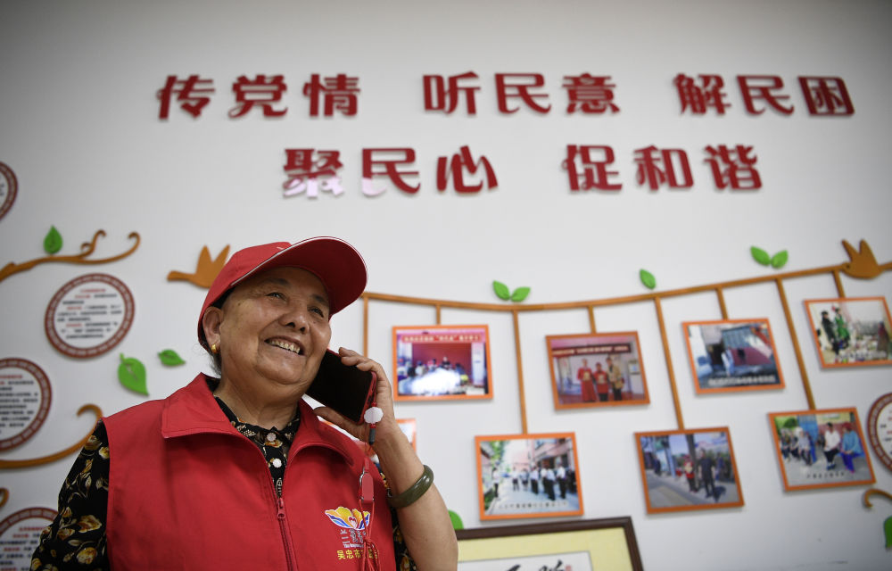 2005年,寧夏吳忠市回族婦女王蘭花從社區(qū)居委會主任崗位退休后,與6名老同事成立了“王蘭花熱心小組”。她帶領(lǐng)團(tuán)隊(duì)二十年如一日堅(jiān)持志愿服務(wù),每天奔走在社區(qū)各個角落,照顧空巢老人、留守兒童,化解矛盾糾紛,幫助解決社區(qū)居民的操心事、煩心事、揪心事,用無私奉獻(xiàn)溫暖著每一個人的心田,成為社區(qū)志愿服務(wù)“領(lǐng)頭羊”,吸引越來越多的人加入志愿服務(wù)隊(duì)伍。這是2021年6月16日,王蘭花在社區(qū)工作站與居民通電話。