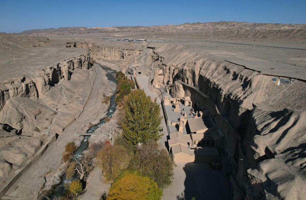位于甘肅瓜州縣的榆林窟(2025年10月31日攝,無(wú)人機(jī)照片)。